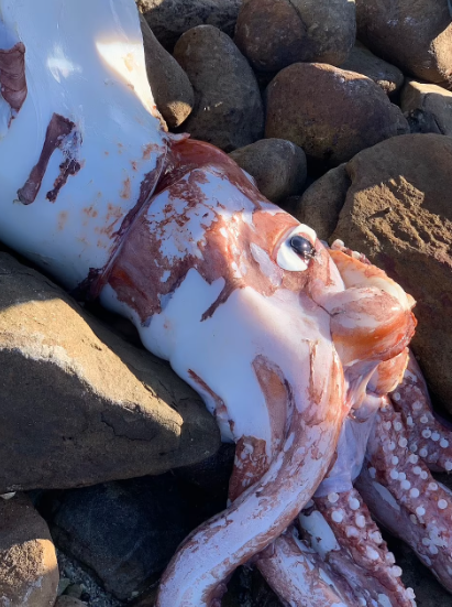 Xác mực khổng lồ xuất hiện ở bờ biển Nam Phi gây sốc