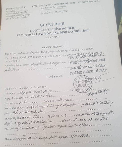 Như vậy, việc cải chính của ông Hùng cách đây 12 năm. “Tôi khẳng định việc UBND huyện Long Phú cho phép cải chính và cấp lại giấy khai sinh là đúng quy định”, ông Thống cho hay.