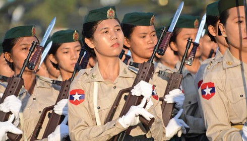 Bên cạnh đó còn có cả các nữ binh sĩ của Myanmar.