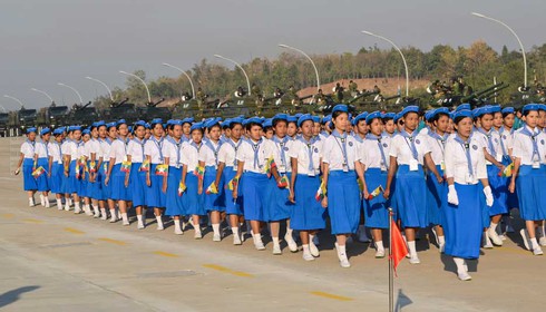 Nữ sinh Myanmar trong buổi lễ diễu hành.