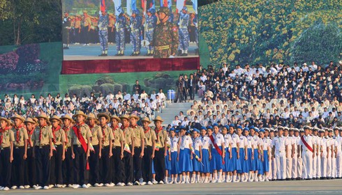 Tham gia diễu hành còn có nhiều học sinh, sinh viên.