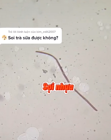 Khi soi trà sữa ở mức phóng đại gấp 40 lần, tài khoản Tik tok này cho biết trong loại nước này có lẫn nhiều cặn bẩn, bột chưa tan hết. Thậm chí, theo quan sát của chủ tài khoản thì bên trong cốc trà sữa ngon lành này còn chứa cả sợi nhựa.