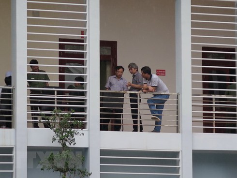 Tổ công tác làm nhiệm vụ xác minh điểm thi tại Sơn La. (Ảnh: Hữu Quyết/TTXVN) |