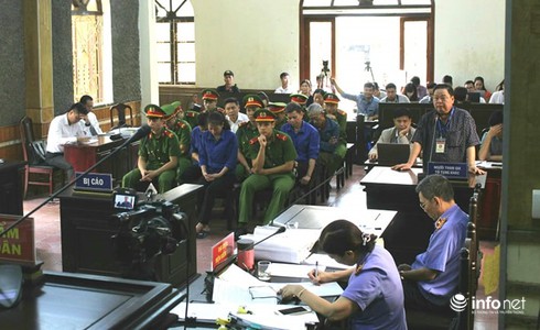 Sau đề xuất của VKS, Chủ tọa phiên tòa lấy ý kiến các bị cáo, cả 8 bị cáo đều không có ý kiến gì khác và xin chấp hành quy định của HĐXX.