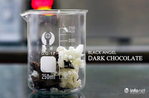 Những thỏi son của anh Hiệp đều bắt nguồn từ loại socola nguyên chất do anh tự nghiên cứu, phù hợp với môi trường tại Việt Nam. |
