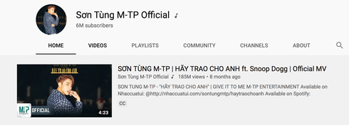 Mới đây, kênh Youtube của nam ca sĩ vừa đạt tròn 6 triệu người theo dõi với 82 video được đăng tải, trong đó có 2 MV trên 200 triệu lượt xem, đưa Sếp trở thành nghệ sĩ có nhiều subscribers nhất Vpop.