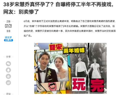 Tuy nhiên, gần đây trang QQ đã có một bài viết nghi ngờ việc Song Hye Kyo thực sự đang mang thai và tin đồn cô ngoại tình khiến chồng phải viết đơn ly hôn.