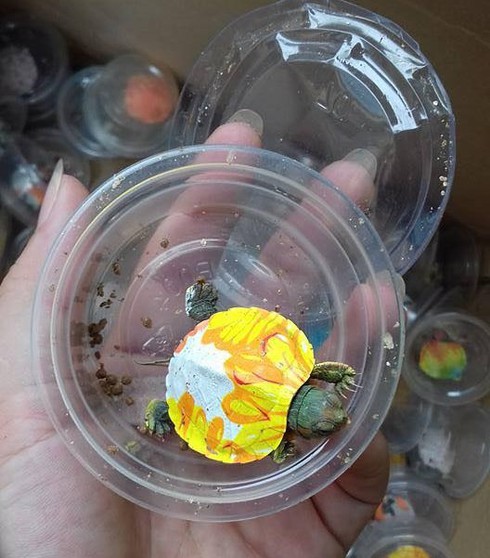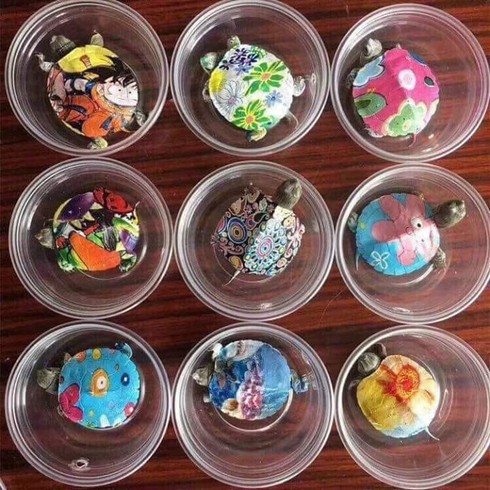 Rùa mini được vẽ sơn lên mai với đủ họa tiết, sắc màu. Ảnh Fb |