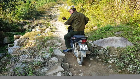 | Con đường vào bản Xa Lao gập gềnh, heo hút. |