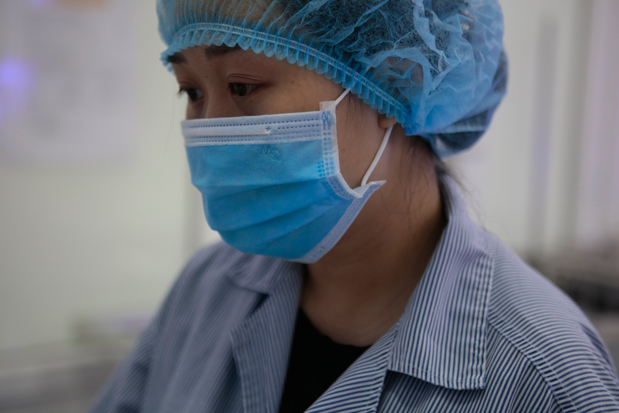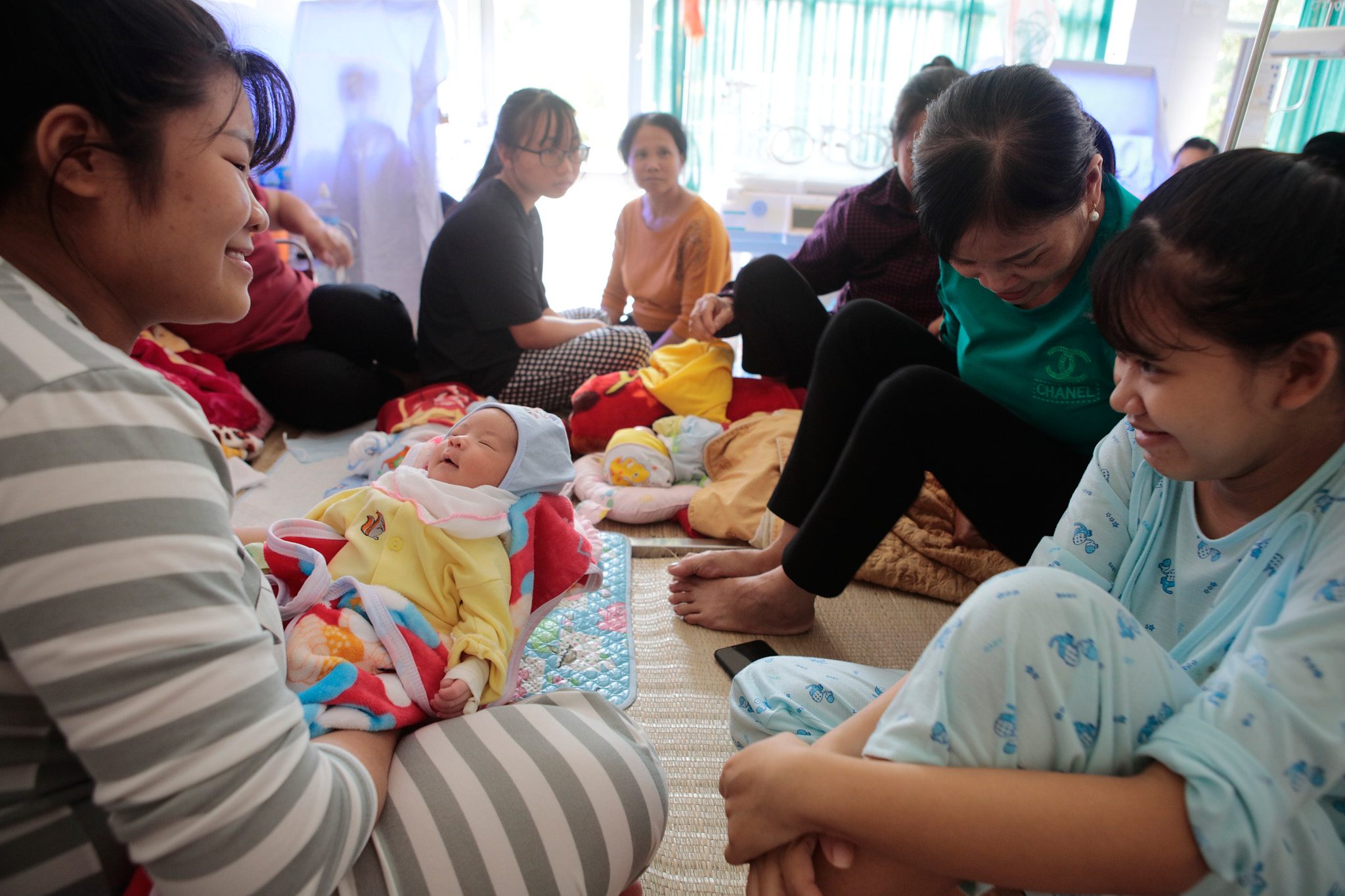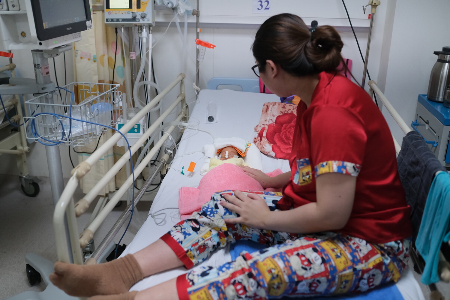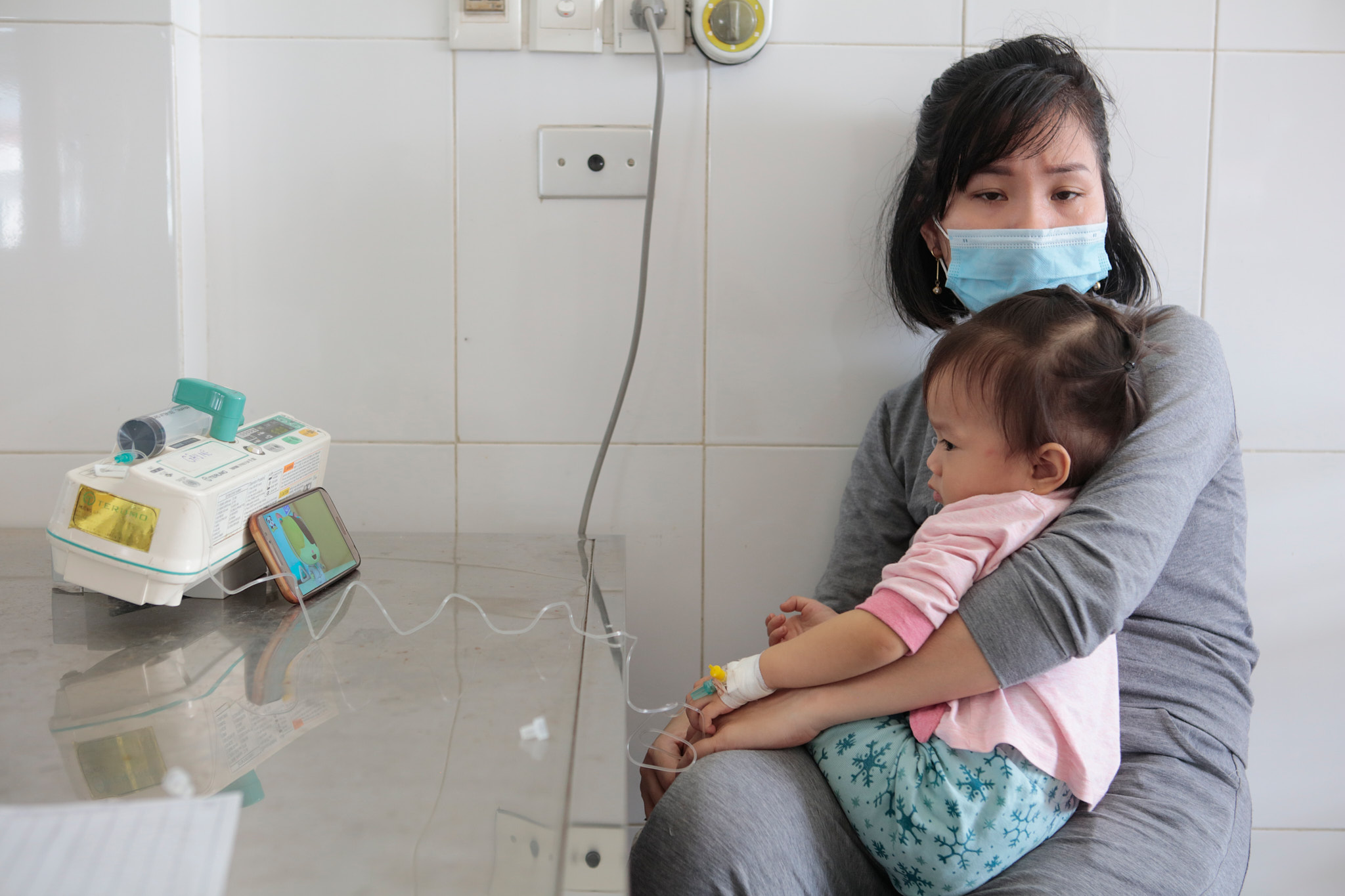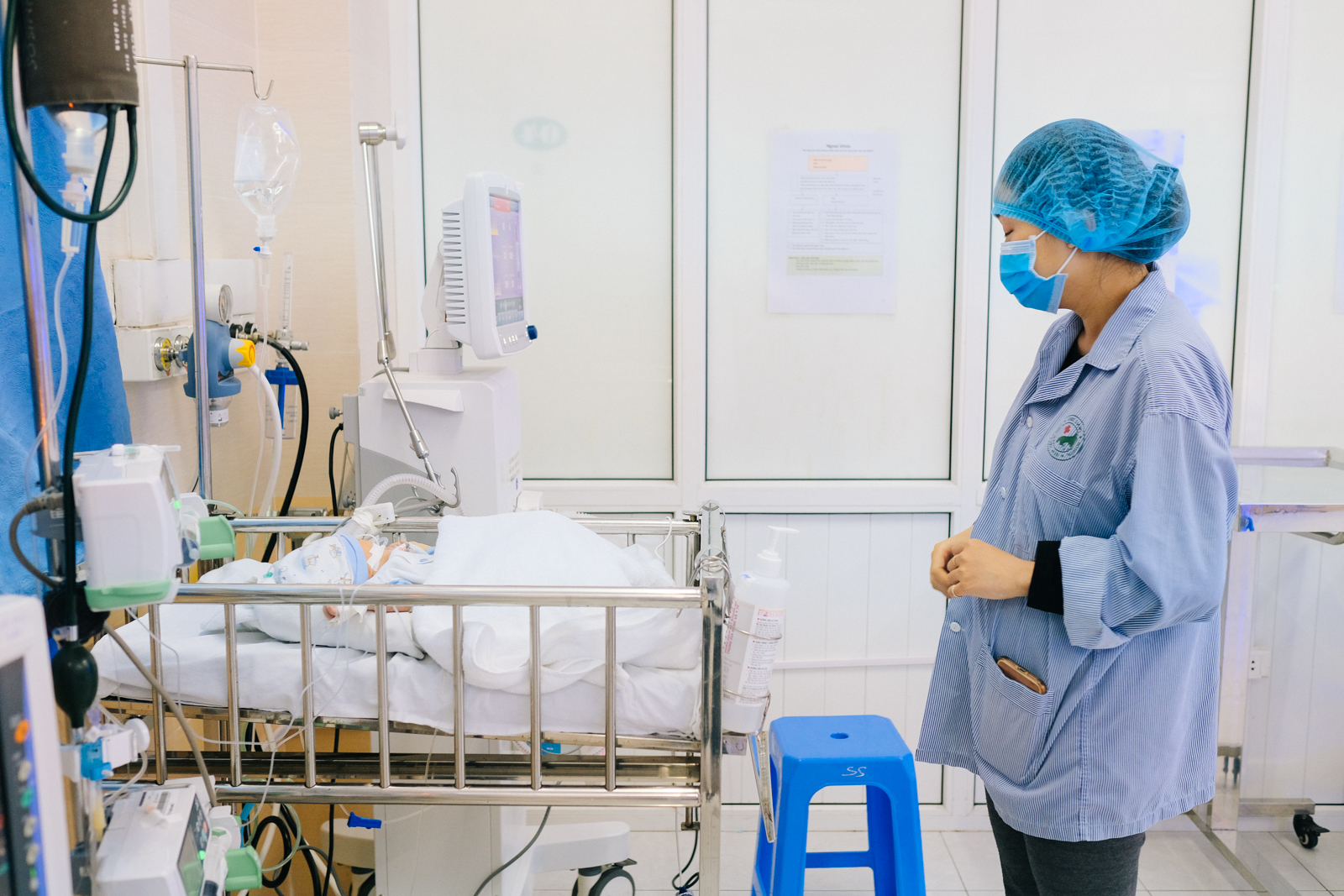 Khi chúng tôi gặp Thảo, bé Khôi Nguyên con cô mới hơn 2 tuần tuổi. Bé bị viêm phổi, nhiễm trùng máu và phải nằm thở máy, truyền kháng sinh. Em bé bị ngạt khi mẹ lâm bồn, nhưng 2 tuần sau đó vẫn khá ổn, chỉ bị sụt sịt, ho hắng nhẹ. Cho đến đêm nọ, con bỗng dưng rút lồng ngực, tím tái, Thảo vội bế vào đến viện thì bé đã viêm phổi và phải thở máy.