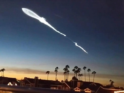 Cảnh tượng độc đáo trên bầu trời Los Angeles là hình ảnh tên lửa Falcon 9 do hãng hàng không vũ trụ SpaceX phóng từ căn cứ không quân Vandenberg.
