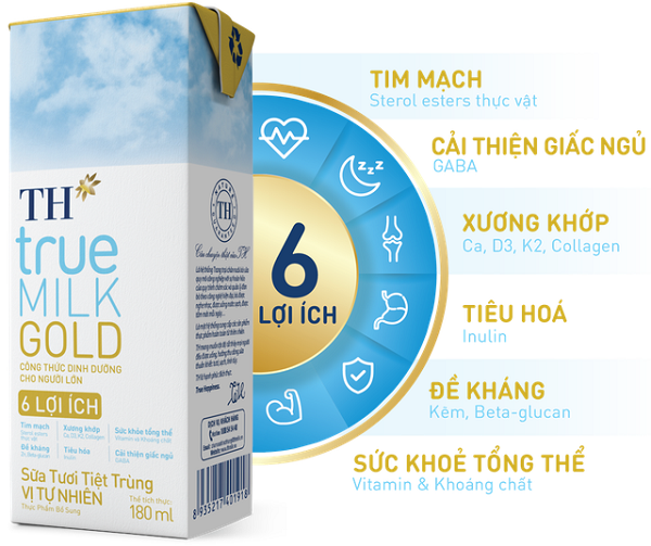 Đại diện Tập đoàn TH cho biết, sữa tươi tiệt trùng vị tự nhiên TH true MILK GOLD phù hợp với người trưởng thành, người muốn chăm sóc sức khỏe theo từng độ tuổi (trưởng thành, trung niên, cao tuổi). Người lớn tuổi có thể sử dụng 1 - 2 hộp 180ml mỗi ngày, kết hợp với chế độ ăn hợp lý. Đặc biệt, theo Thầy thuốc Phạm Hưng Củng, người từ 50 tuổi trở lên nếu sử dụng 2 hộp TH true MILK GOLD mỗi ngày có thể đáp ứng hơn 50% nhu cầu canxi, vitamin D3 và hơn 70% nhu cầu selen, kẽm.