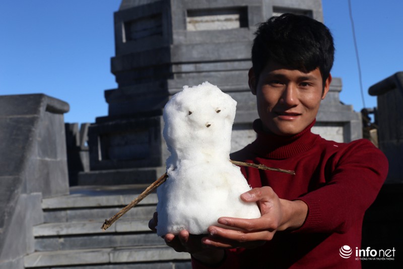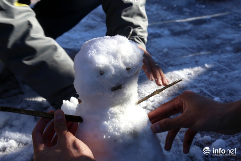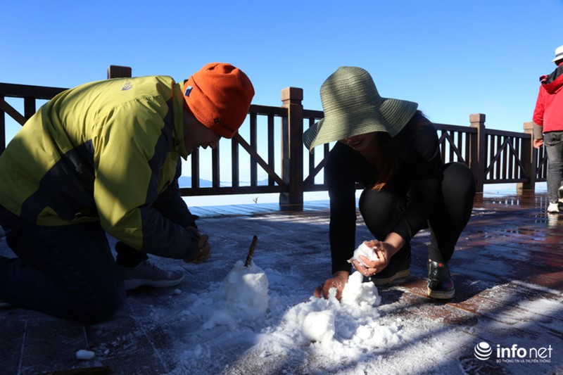 Sương muối trắng xóa, du khách đắp người tuyết trên đỉnh Fansipan