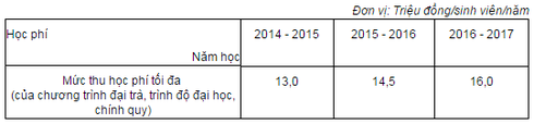 Trường thu học phí theo kế hoạch như sau: