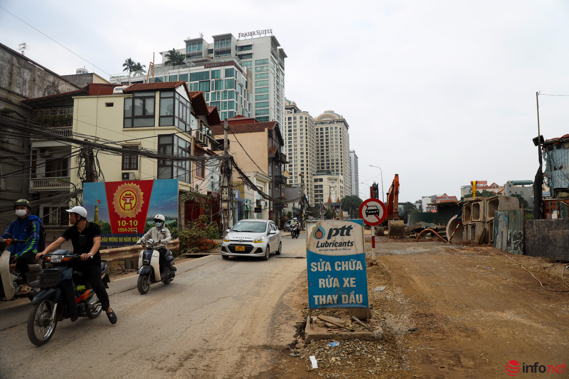 Để phục vụ dự án cải tạo, mở rộng đường Âu Cơ thi công trở lại, lực lượng chức năng đã thực hiện việc tổ chức, phân luồng lại giao thông tại đây từ ngày 5/11.