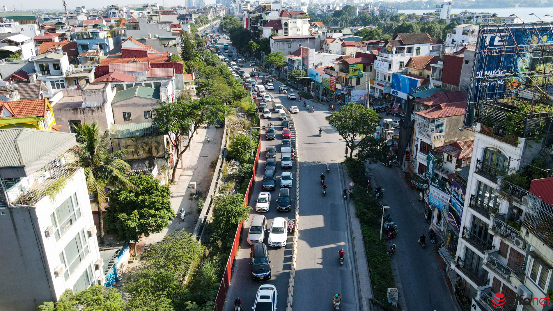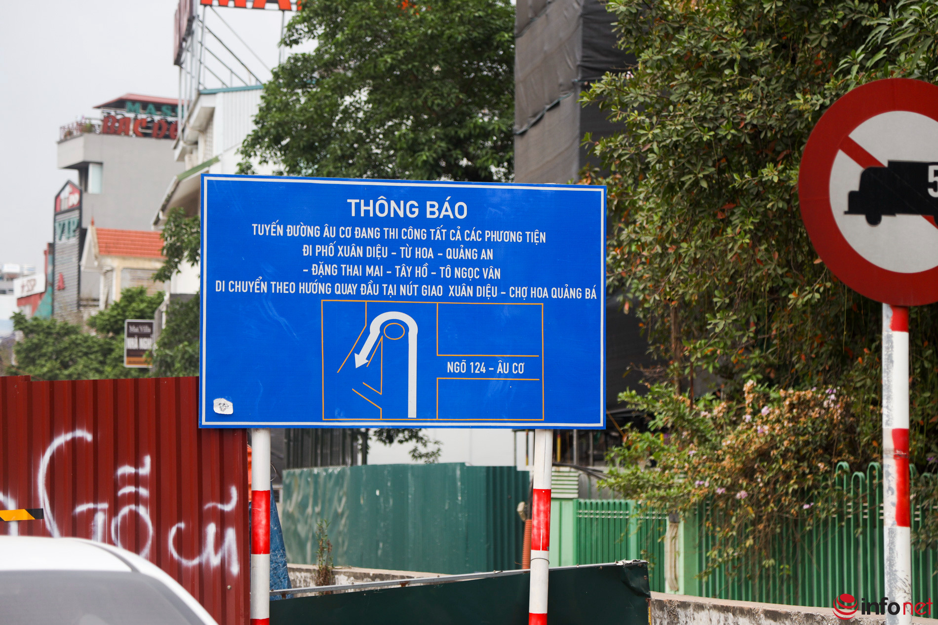 Lực lượng chức năng đã tiến hành lập hàng rào cứng bằng bê tông dài hàng trăm mét tại khu vực nút giao đường Âu Cơ - Xuân Diệu nhằm phục vụ công tác phân luồng giao thông, khiến mặt đường bị thu hẹp. Các phương tiện bị ùn ứ kéo dài theo hướng từ Nghi Tàm đi Âu Cơ.