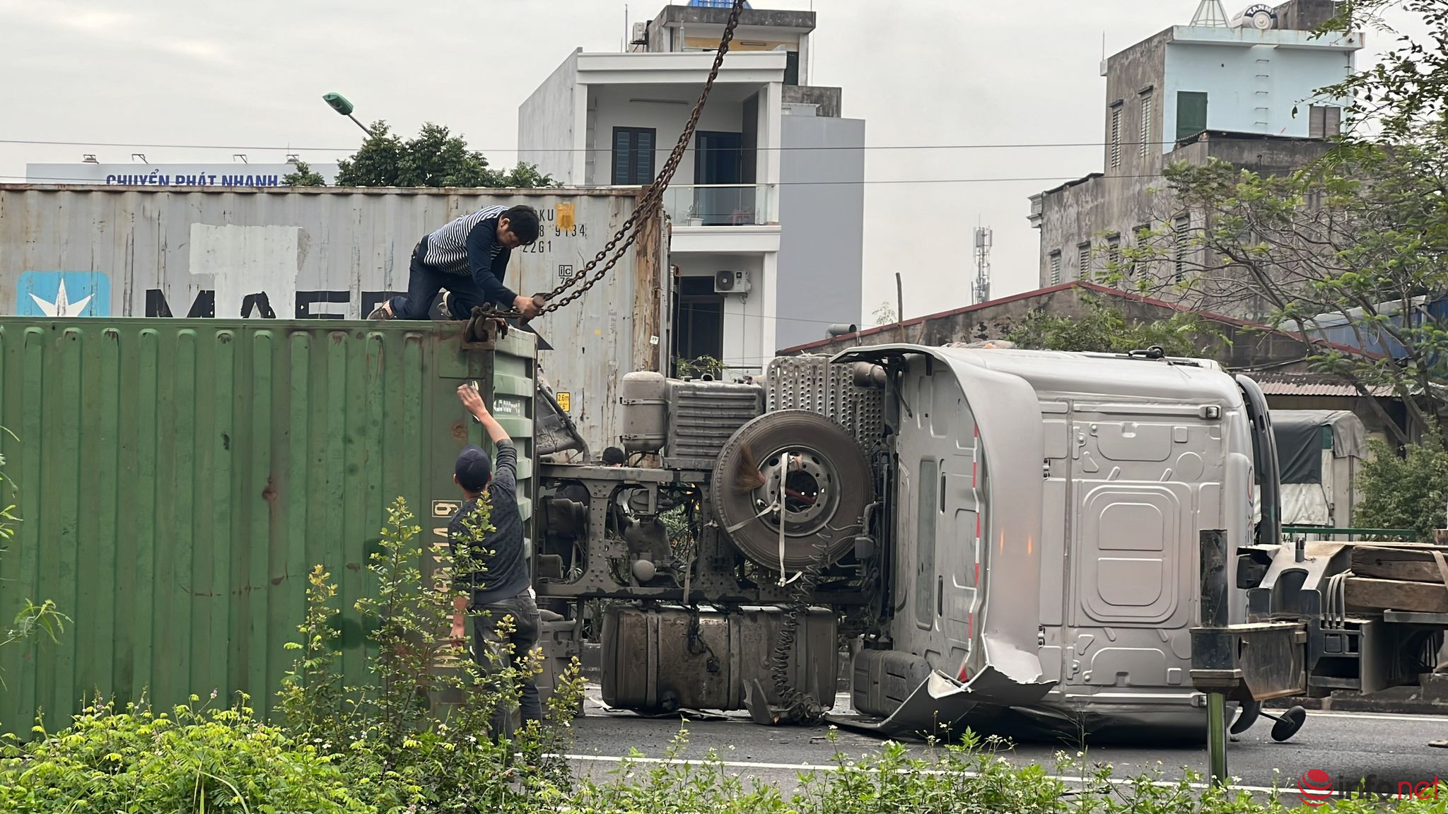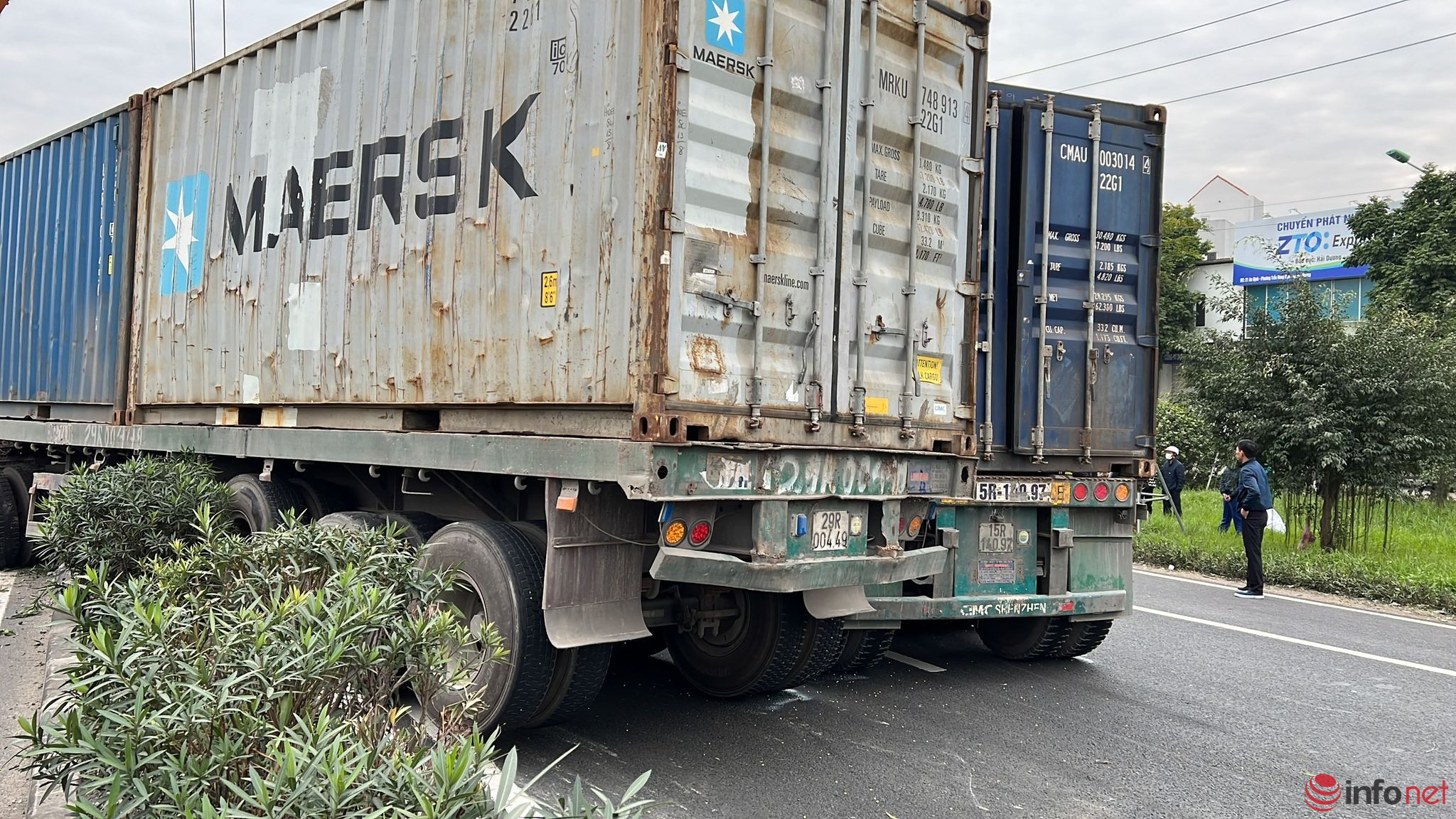 Sau đó, xe container 15C- 25580 lao qua dải phân cách, va chạm với ô tô đi ngược chiều mang BKS 29H- 80433.