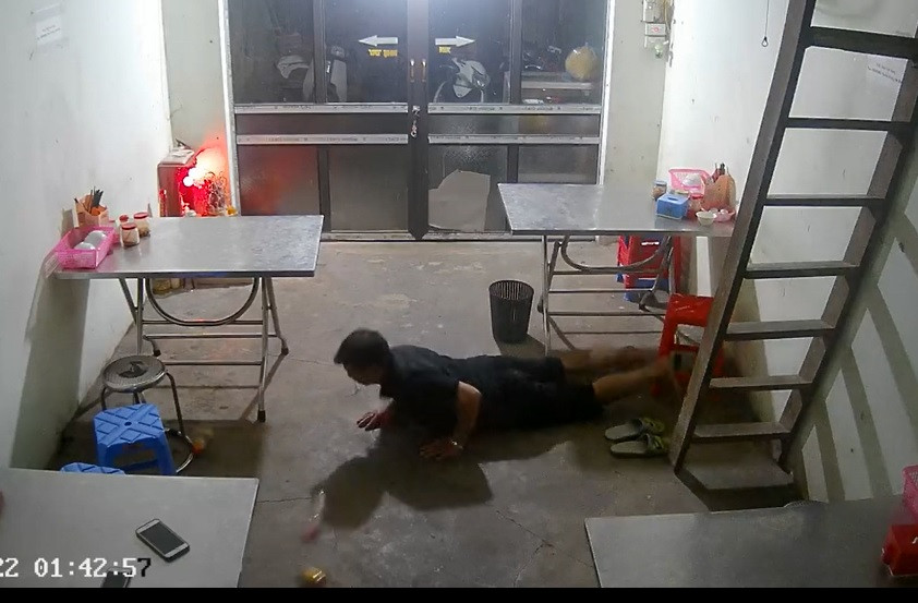 Theo camera an ninh trong gia đình ghi lại, vụ tai nạn xảy ra vào lúc 1h43' sáng 24/10/2022. Người đàn ông đi từ trên gác xép xuống bằng thang dựng đứng, nhưng vừa bước xuống được 2 bậc anh đã bị trượt ngã sấp mặt xuống nền nhà.