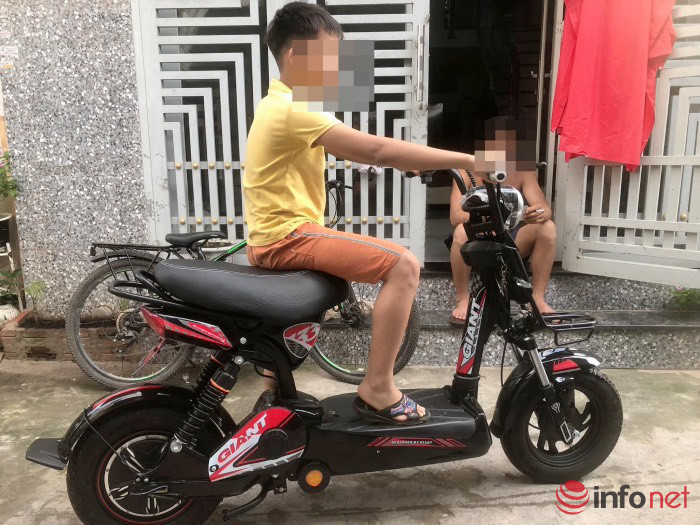 Mới học lớp 7 nhưng bé Nguyễn Gia Bảo (trú tại Đông Hưng, Thái Bình) đã được mẹ mua xe đạp điện cho để đi học. Theo mẹ Bảo xe đạp điện thuận tiện cho Bảo chở cả em bé đi học về. Bố mẹ bận bịu không có thời gian nên khi đi học về Bảo sẽ chở thêm em trai lớp 2 về thậm chí cả em bé út mới 3 tuổi đang học trường mầm non bên cạnh.