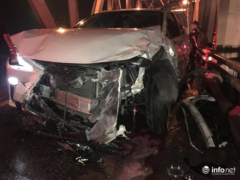 Theo ghi nhận của PV Infonet tại hiện trường, chiếc xe máy của 3 nam thanh niên bị nghiền nát sau cú va chạm mạnh, hai chiếc xe ô tô bị hư hỏng ở nhiều chỗ. Các mảnh vỡ văng tứ tung khắp mặt cầu. Ba nạn nhân trên xe máy bị văng xa hàng chục mét, tử vong tại chỗ.