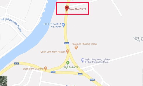 Vị trí trạm thu phí T2 đặt tại phường Thới Thuận, quận Thốt Nốt, TP Cần Thơ |