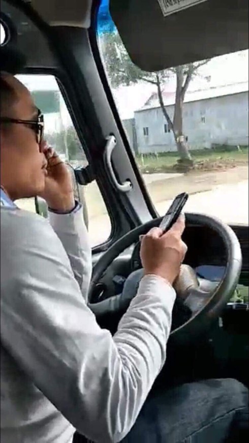 Lái xe liên tiếp dùng điện thoại khi lái xe. (Ảnh: Cắt từ video) |