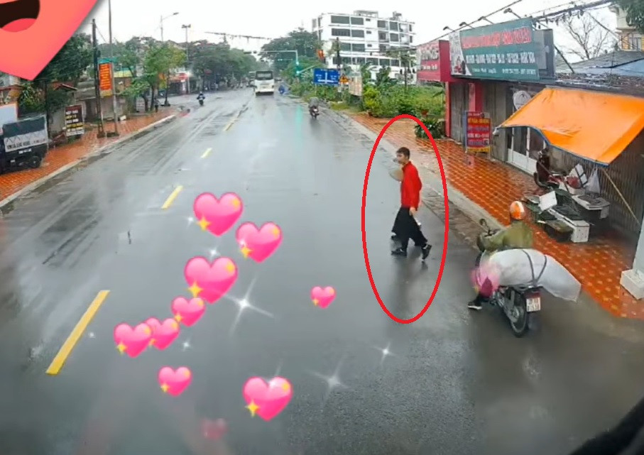 Theo clip, trên một tuyến đường sau cơn mưa có nhiều phương tiện qua lại, xe ô tô có gắn camera hành trình đang chạy bon bon trên đường thì bỗng nhiên tài xế quan sát thấy ở lề đường có một cụ bà đang đứng chờ để đi bộ sang đường. Tài xế liền phanh xe dừng lại nhường đường cho cụ bà. Tuy nhiên do nhiều xe vẫn tiếp tục di chuyển nên sau khoảng 20 giây chờ mà cụ bà vẫn chưa qua đường được, nam tài xế đã nhanh chóng xuống xe giúp cụ sang đường.