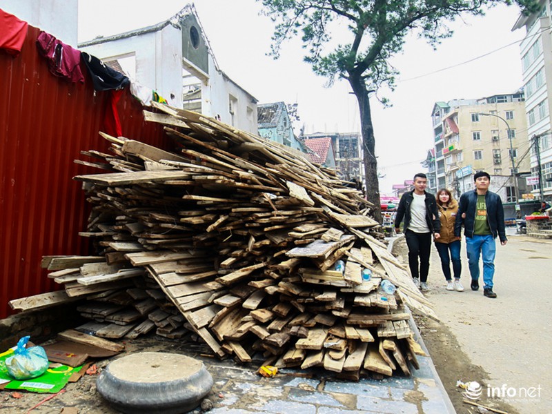 Vật liệu xây dựng tràn lan trên đường, trên vỉa hè tạo nên khung cảnh lộn xộn tại Tam Đảo. |