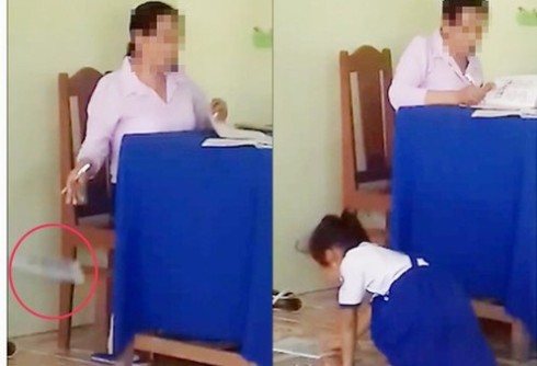 Trước đó, trong ngày 16/10, trên các diễn đàn và mạng xã hội đã lan truyền đi một video clip, ghi lại cảnh một nữ giáo viên sau khi ngồi chấm bài xong, đã ném vở của học sinh xuống đất, rồi gọi học sinh tới nhặt đem về.