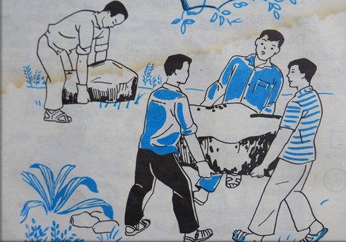 Tranh minh họa bài "Hòn đá to" của tác giả Hồ Chí Minh trong SGK Tiếng Việt cũ lớp 2, tập 2, NXB Giáo dục. |