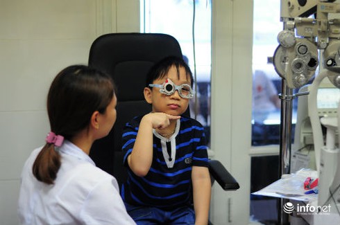 Chị Trần Thị Hà – Mễ Trì, Nam Từ Liêm, Hà Nội tâm sự, năm trước vừa vào đầu năm học mới của con được hơn 1 tháng, cô giáo của con đã gọi chị lại nói việc con gái chị lớp 2, ngồi bàn đầu nhưng cháu vẫn không nhìn rõ và phải nheo mắt mới nhìn thấy. Chị Hà đưa con đi khám mắt bác sĩ cho biết cháu bị cận 2,25 độ mắt phải và 2,5 độ mắt trái.