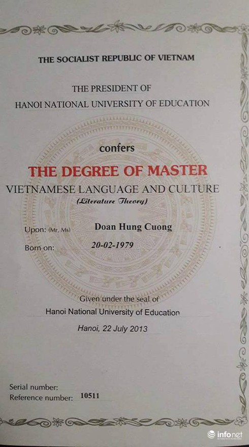 Bằng thạc sĩngành Lí luận Văn học của thầy Cường |