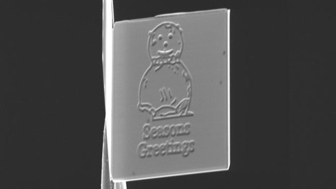 Theo tờ BT, tấm thiệp giáng sinh có kích thước 15x20 micromet (một micromét bằng một phần triệu của mét) là sản phẩm của Phòng thí nghiệm Vật lý Quốc gia của Anh.