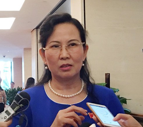 Bà Lê Thị Thủy trong lần trả lời báo chí bên hành lang Quốc hội |