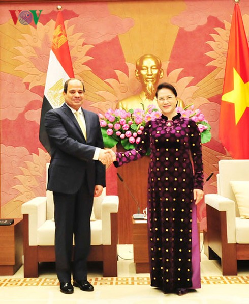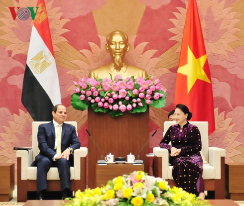 Vui mừng nhận thấy quan hệ hữu nghị, hợp tác nhiều mặt giữa hai nước đang trên đà phát triển tốt đẹp trong nhiều lĩnh vực, Chủ tịch Quốc hội khẳng định, Việt Nam luôn coi trọng và mong muốn thúc đẩy hơn nữa mối quan hệ tốt đẹp này; hy vọng chuyến thăm cấp Nhà nước của Tống thống Ai Cập đến Việt Nam sẽ ghi dấu ấn sâu sắc và mở ra cơ hội hợp tác tốt đẹp giữa hai nước.