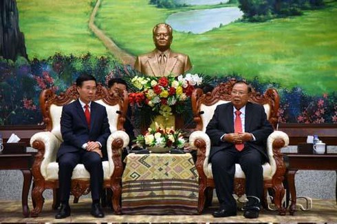 Tổng Bí thư, Chủ tịch nước Lào Bun-nhăng Vo-la-chít tiếp đồng chí Võ Văn Thưởng, Ủy viên Bộ Chính trị, Bí thư Trung ương Đảng, Trưởng Ban Tuyên giáo Trung ương (Ảnh:KPL) |