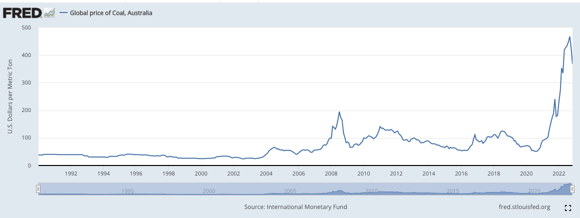 Giá than nhập khẩu cung cấp cho các nhà máy điện đã bắt đầu tăng từ cuối năm 2021. Từ mức 54 USD/tấn của năm 2020, giá than nhiều thời điểm năm 2022 đã tăng lên 359 USD/tấn và giữ ở mức cao cho đến nay.