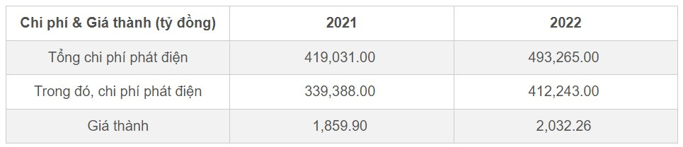 Số liệu trên cho thấy, mặc dù sản xuất điện năng từ nhiệt điện than năm 2022 có giảm so với năm 2021 là 13,153 tỷ kWh, nhưng giá than tăng cao dẫn đến chi phí cho sản xuất điện năng từ nhiệt điện than tăng cao. Với cơ cấu chiếm đến 39% sản lượng điện sản xuất, chi phí sản xuất điện than là nguyên nhân chính góp phần đẩy giá thành sản xuất điện tăng cao trong năm 2022.