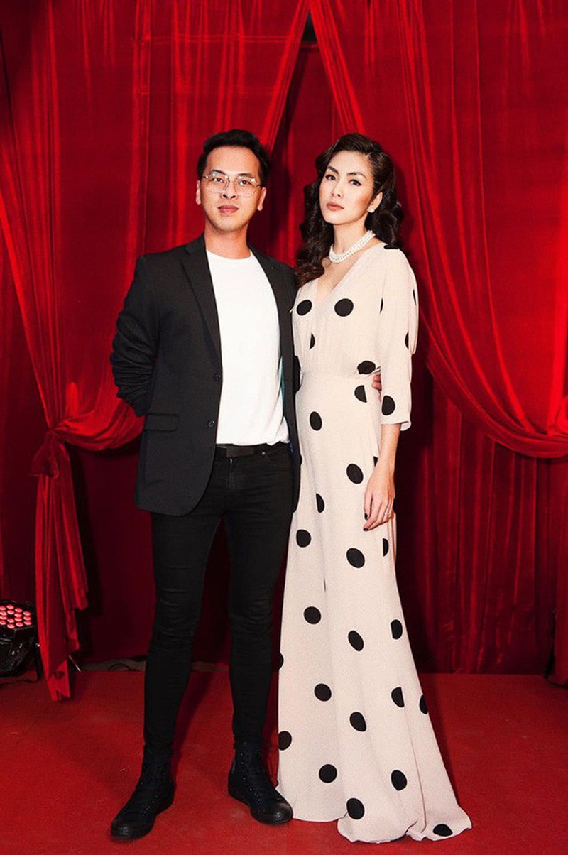 Nàng ngọc nữ đồng hành cùng người bạn, người anh thân thiết là stylist Quang Tuyến. |