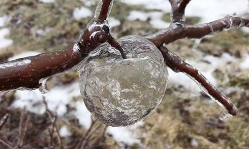 Cư dân địa phương Andrew Sietsema lần đầu tiên bắt gặp hiện tượng kỳ lạ trong lúc tỉa bớt vườn táo ở khu vực Fruit Ridge tại hạt Kent, bang Michigan. Andrew chia sẻ ảnh chụp khối cầu băng trông như làm từ kính trên Facebook cá nhân hôm 6/2 và gọi đó là "táo ma", theo Fox News.