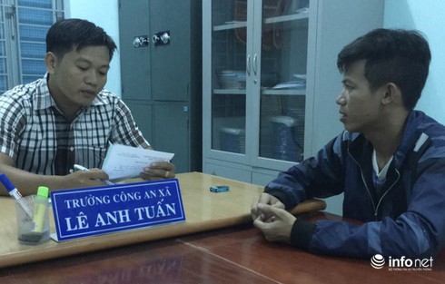 Anh Quốc (bên phải) trình báo vụ cướp tại trụ sở công an địa phương. |