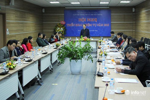 Toàn cảnh hội nghị triển khai nhiệm vụ năm 2018 của Tạp chí TT&TT chiều 11/1 tại Hà Nội. Ảnh: Thái Anh |