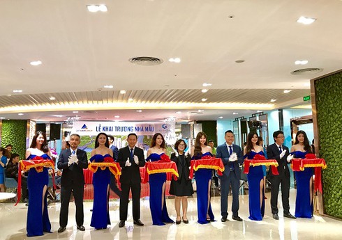 Ban lãnh đạo Tập đoàn Đất Xanh cắt băng khai trương nhà mẫu dự án Gem Riverside. |