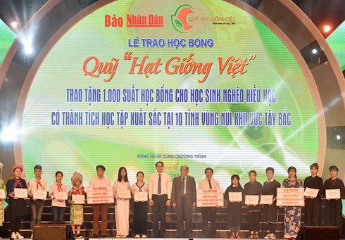 Nằm trong hoạt động lần này, Quỹ "Hạt giống Việt" Báo Nhân Dân quyết định trao 1.000 suất học bổng tặng học sinh nghèo hiếu học của 10 tỉnh, thành phố khu vực miền núi phía Bắc. Trong đó, mỗi tỉnh được phân bổ 100 suất, mỗi suất trị giá 3 triệu đồng, với tổng giá trị 3 tỷ đồng. Toàn bộ kinh phí của chương trình trao học bổng lần này do Tập đoàn Mường Thanh tài trợ.