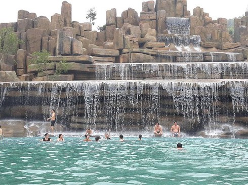 Bể bơi Thác tràn tại khu sinh thái Mường Thanh Diễn Lâm. |