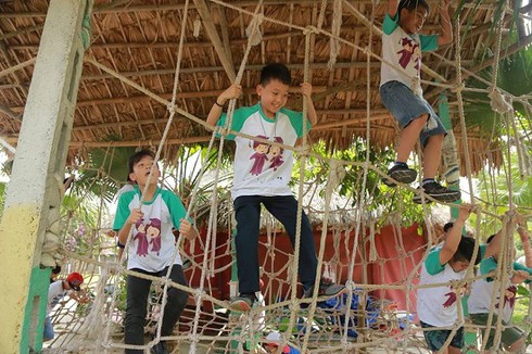 Du khách nhí tham gia các trò chơi vận động tại công viên Safari Land. |