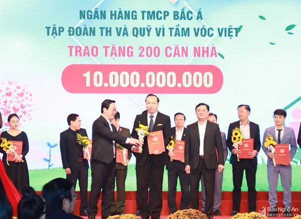Ngày 4/2, tại lễ phát động Chương trình vận động, hỗ trợ xây dựng nhà cho người nghèo, người có hoàn cảnh khó khăn trên địa bàn tỉnh Nghệ An, Tập đoàn TH, Ngân hàng TMCP Bắc Á đã thông qua Quỹ Vì Tầm Vóc Việt ủng hộ 10 tỷ đồng để hỗ trợ xây dựng 200 căn nhà cho bà con trong giai đoạn 2023-2025.