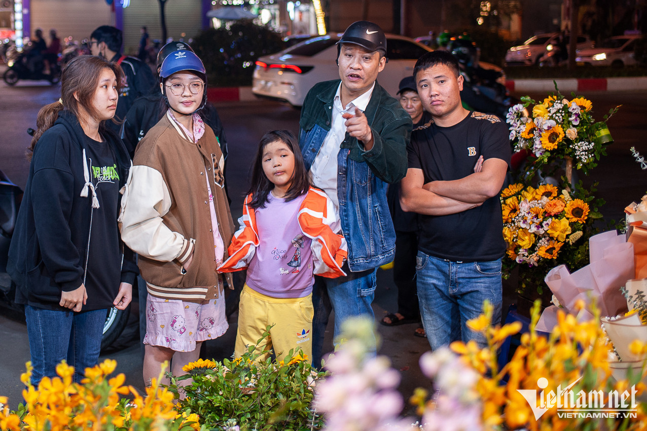 Cảnh khách tấp nập chọn mua hoa không chỉ ở các cửa hàng mặt phố. Nhiều người còn tìm đến các xe hoa bán rong.