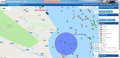 Khu vực bị nạn được khoanh vùng trên bản đồ hệ thống AIS. Ảnh:vishipel |