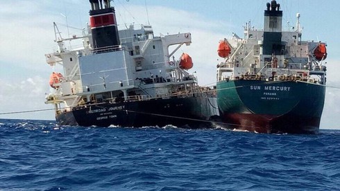 Hình minh họa: Một tàu hàng (bên trái ảnh) bị mắc cạn trên biển Vũng Tàu vào năm 2017 |